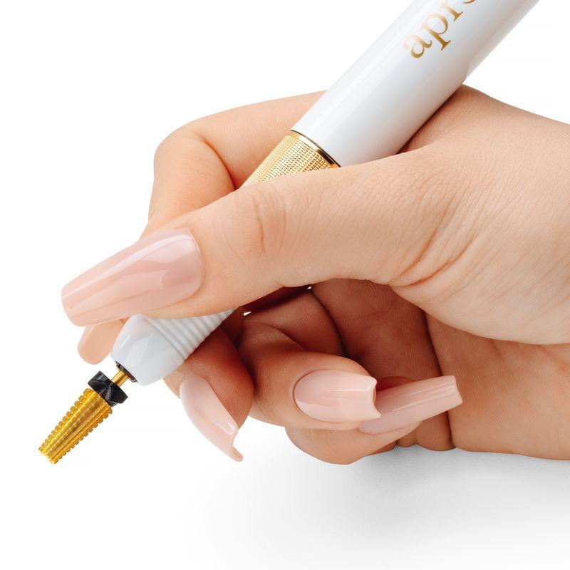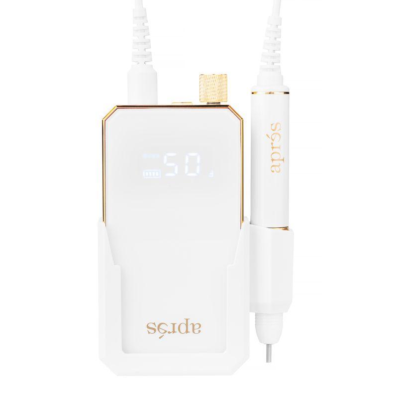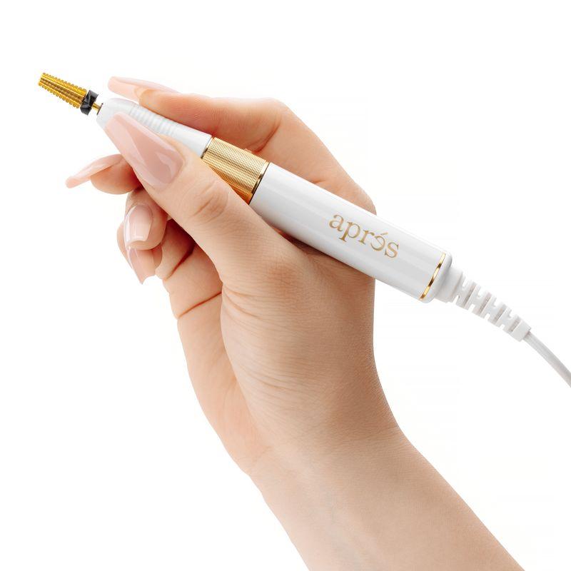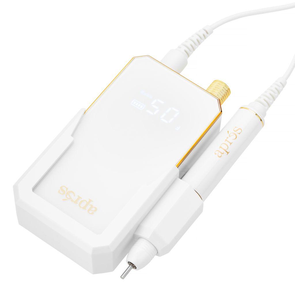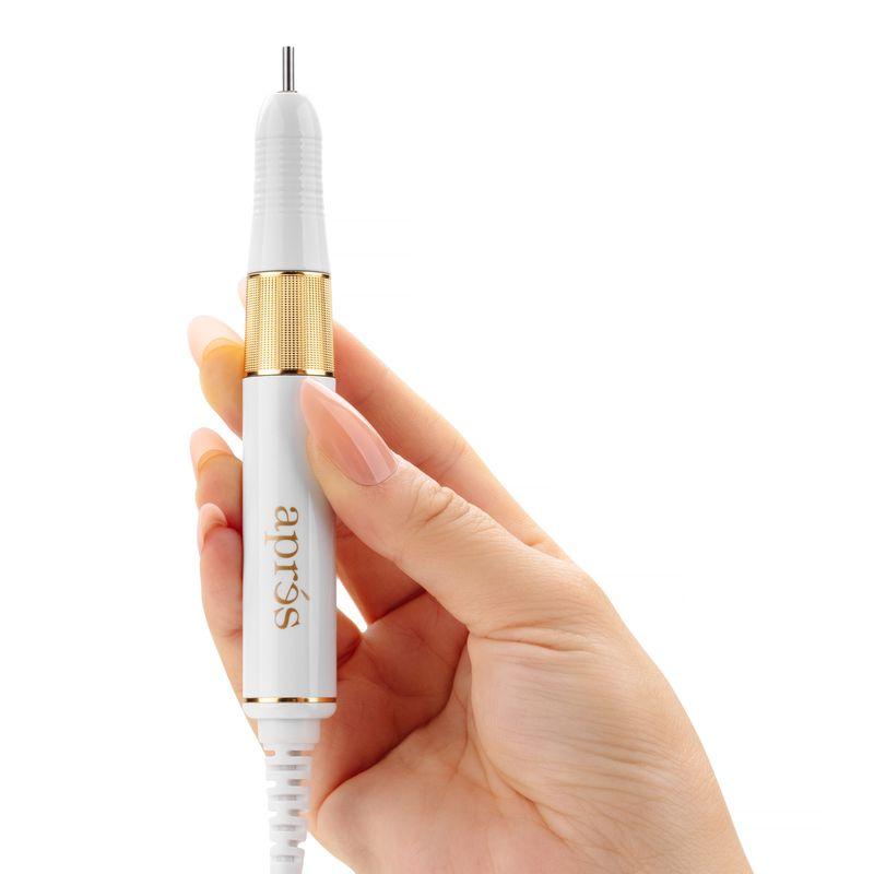 A smooth-motor rechargeable e-file with an ergonomic handpiece for nail prep, removal, care, and precise filing—designed to reduce hand strain. Includes charger.