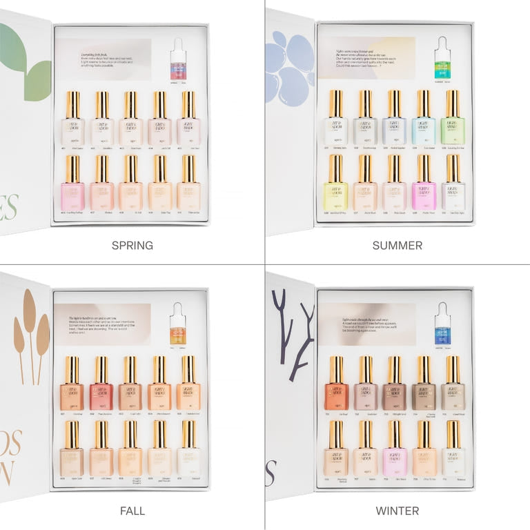 - Spring - New Sun Arrives: Fall in love with this delicate and soft 10 pcs Sheer Gel Couleur collection of pinks and peachy nudes. This set adds a touch of sophistication and romanticism to the springtime.