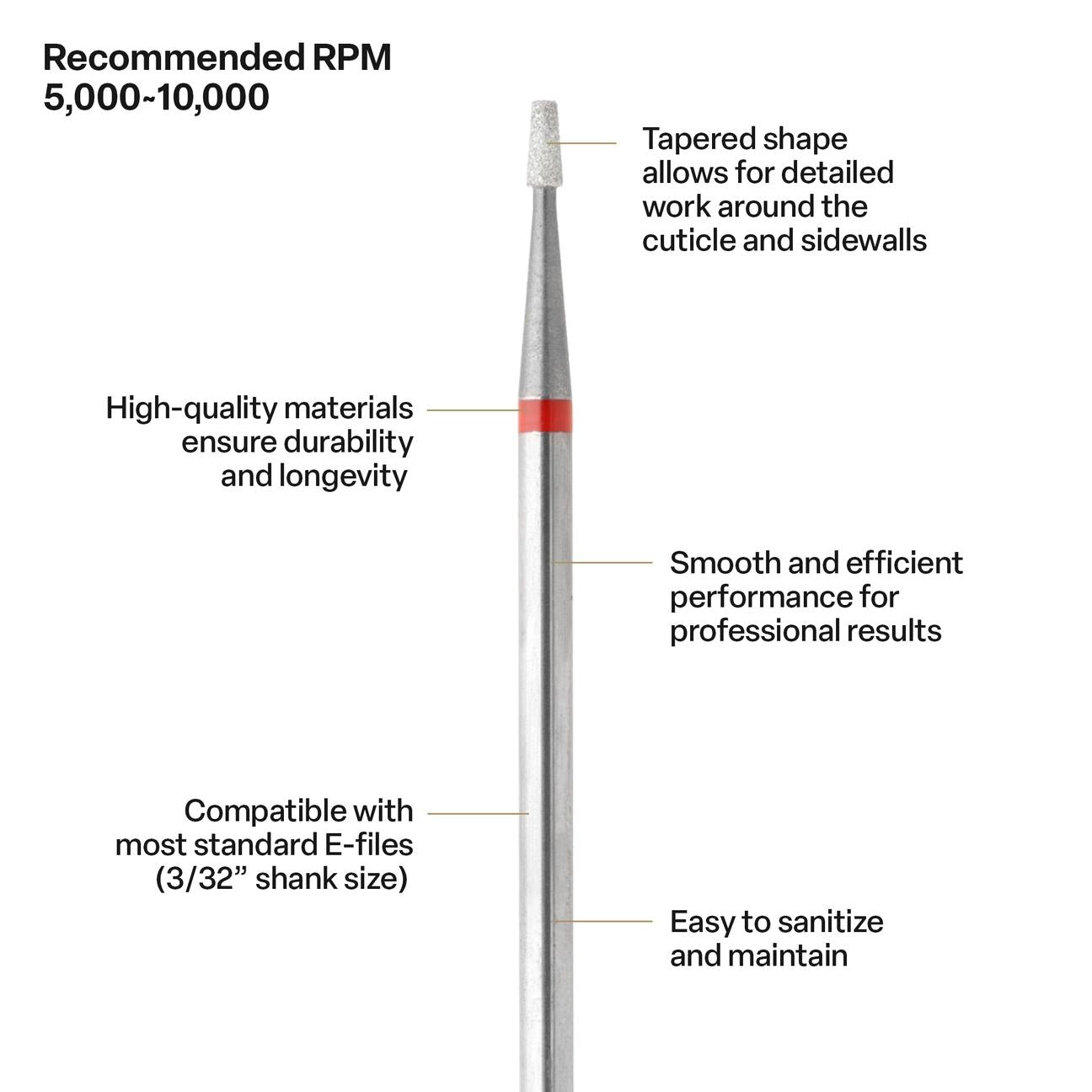 Take your nail prep to the next level with the Aprés Tapered Shape Bit. Diamond-plated for durability and precision, this versatile bit is ideal for gently pushing back the eponychium, lifting and removing cuticle, and even smoothing out rough patches or calluses. Its tapered shape allows for controlled, detailed work during every service. For best results, use at an RPM of 15,000 or lower, and adjust based on your comfort and technique. Whether you're a seasoned tech or still learning, this is the multitasking bit you’ll reach for every time.