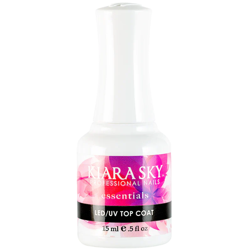 Our LED/UV Gel Polish Top Coat protects acrylic and dip powder nail enhancements. This formula is non-wipe and seals in color with no yellowing, bubbling or chipping. Also adding strength to every mani, this gel top coat non- soak off and is ideal for nail techs working around acetone.