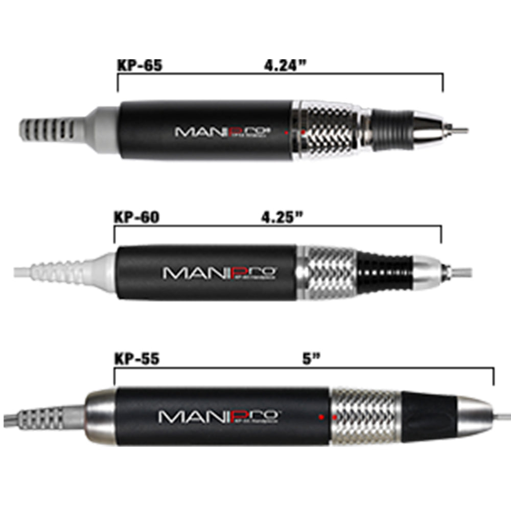 Experience the MANIPro, model KP-65 Handpiece manufactured exclusively for KUPA Inc. in Japan. A precision, hand crafted instrument with amazing speed, torque and durability. Sleek, ergonomic and vibration free! With an ultra high-speed coreless motor, manufactured in Japan. Everything you would expect from KUPA Inc. Beautiful contemporary design, featuring our exclusive diamond pattern finish. Inspired by makers of MontBlanc™ precision writing instruments! Designed for professional Nail Technicians with high expectations and discriminating taste.