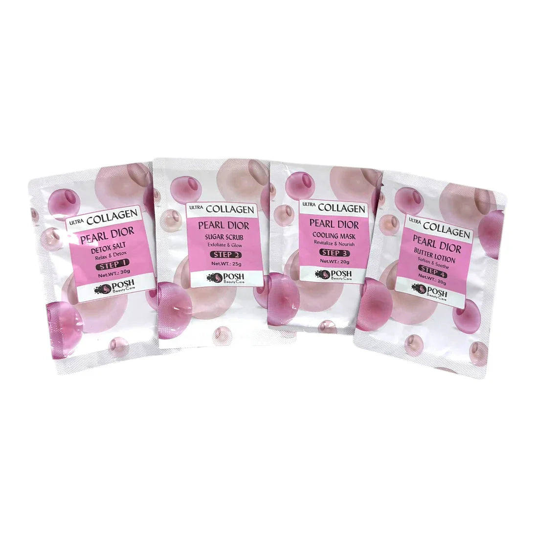 Elevate your pedicure with the luxurious Posh Ultra Collagen 4-in-1 Pedicure Kit – Pearl Dior. Infused with a soft, elegant Pearl Dior scent and skin-enhancing collagen, this single-use detox spa kit smooths, hydrates, and purifies—leaving your feet looking and feeling pampered.