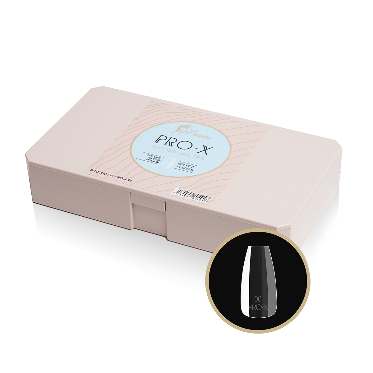 Designed for a seamless fit, our PRO - X Soft Gel Nail Tips are expertly sculpted in 14 sizes, including the long-awaited half sizes, for a precise and customized application. Specially crafted to follow the natural curve of the cuticle, they blend smoothly at the base and reduce the risk of lifting. Available in a variety of popular nail shapes (Round, Almond, Coffin, Stiletto, and Square), these soft gel tips offer the perfect canvas for your nail creations. Achieve the most natural-looking results anytime, anywhere!