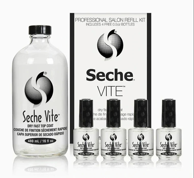 Seche - Vite Dry Fast Top Coat Refill 16oz + 4 Free 0.5oz Bottles