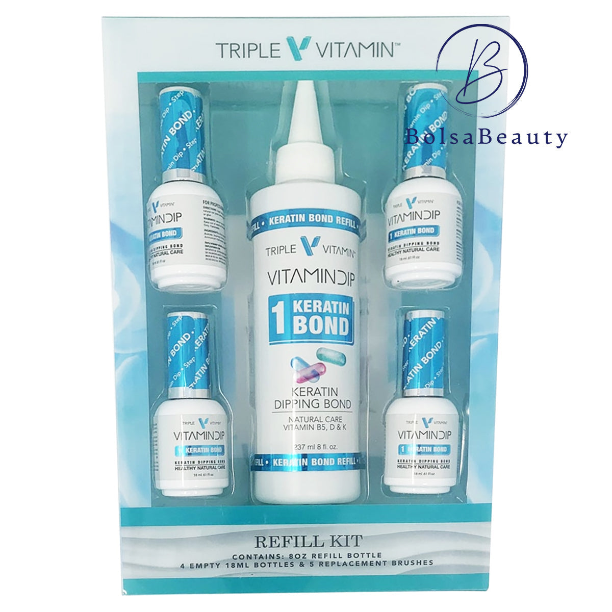 Triple Vitamin - Dipping REFILL KIT (Step #1 - #4) - 8oz + FREE 4 Empty Bottles [Top/Base/Act]